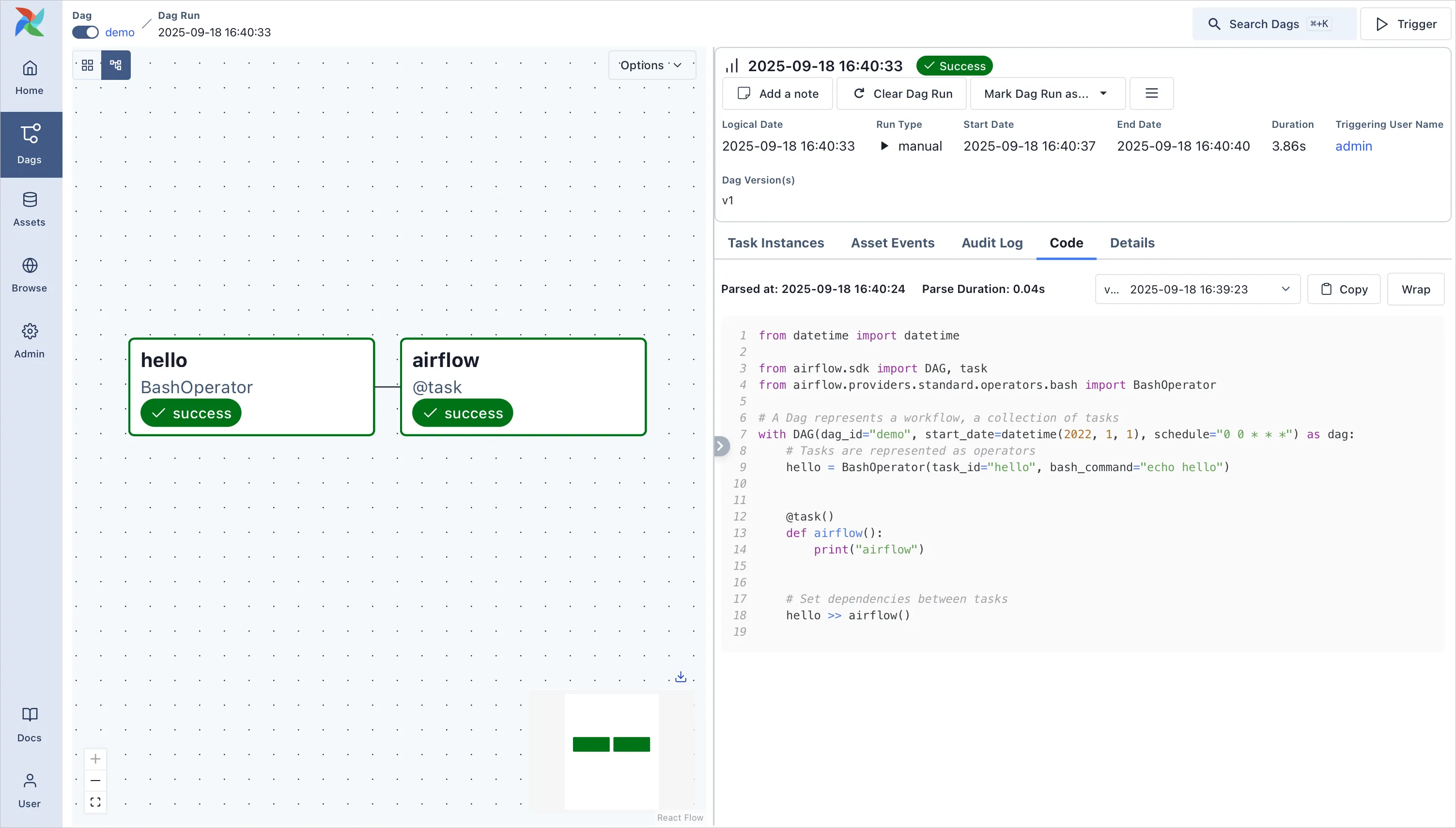 Concrètement, Airflow vous permet de modéliser vos pipelines sous forme de DAGs (Directed Acyclic Graphs). Un DAG décrit l’enchaînement logique de tâches au sein d’un projet data. Chaque tâche peut être un script Python, une requête SQL, un job Spark, un appel d’API ou même l’exécution d’un workflow DBT. Airflow garantit que ces tâches s’exécutent dans le bon ordre, selon des dépendances explicites, avec une gestion précise des erreurs et des reprises.