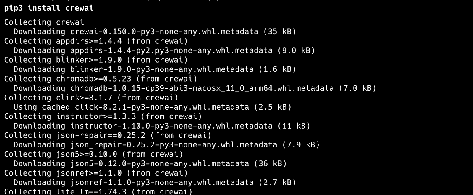 Dans votre terminal, selon la version de pip que vous avez, installez CrewAi grâce à cette commande :