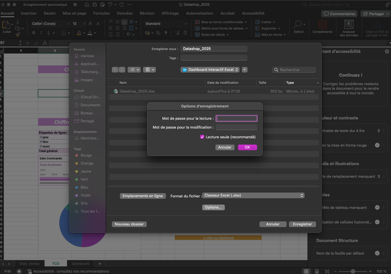 Cochez l’option "Lecture seule recommandée", et, si besoin, ajoutez un mot de passe pour la modification.